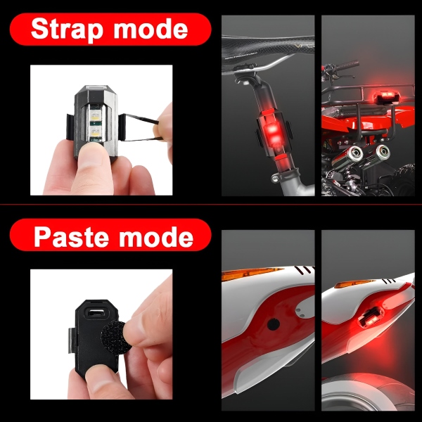 Ove svetiljke su neverovatno svestrane i dizajnirane da se prilagode automobilima, motociklima, biciklima i dronovima. Možete birati između metoda instalacije lepljivim trakama ili gumicama za jednostavnu i sigurnu instalaciju. Nema potrebe za komplikovanim alatima ili profesionalnom pomoći.